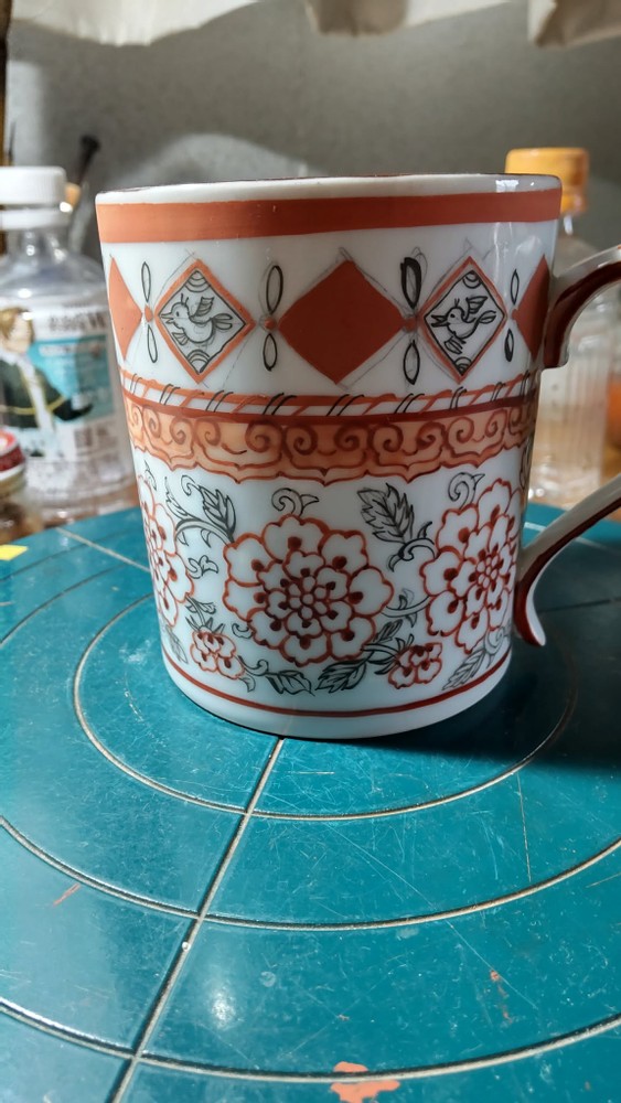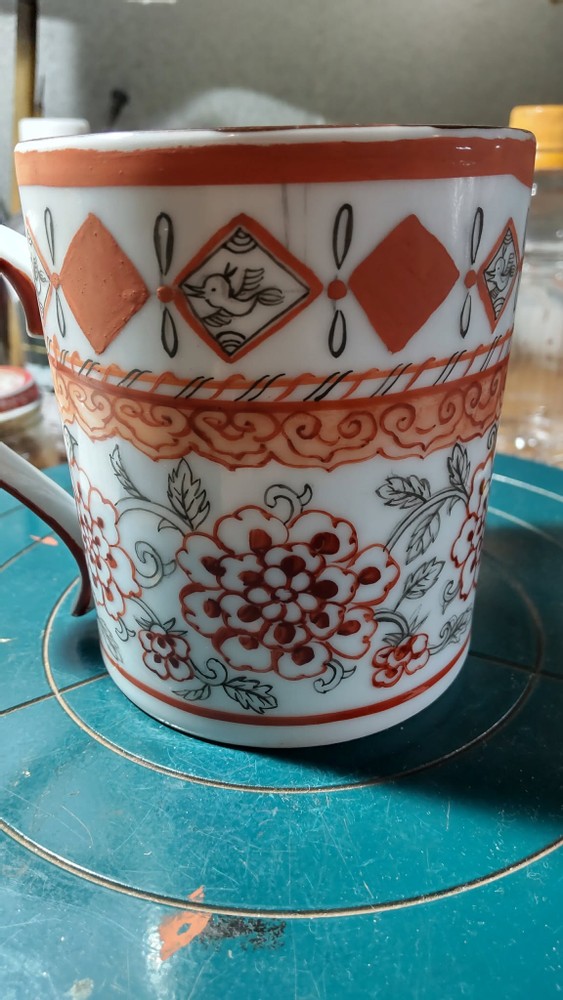 I painted this Swatow-style mug for my friend from Kyushu. When I received a message from her saying she would visit me, I started painting this.