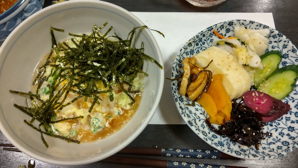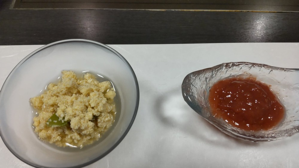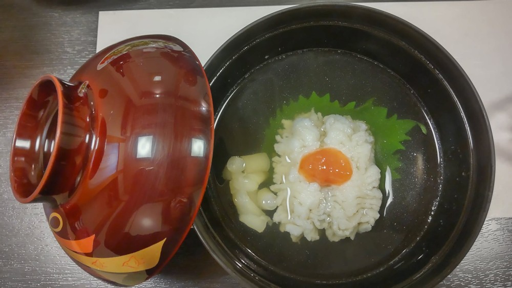 The left side in the picture shows eggs from Hamo. I had the egg with bainiku for the first time, and I really enjoyed it.