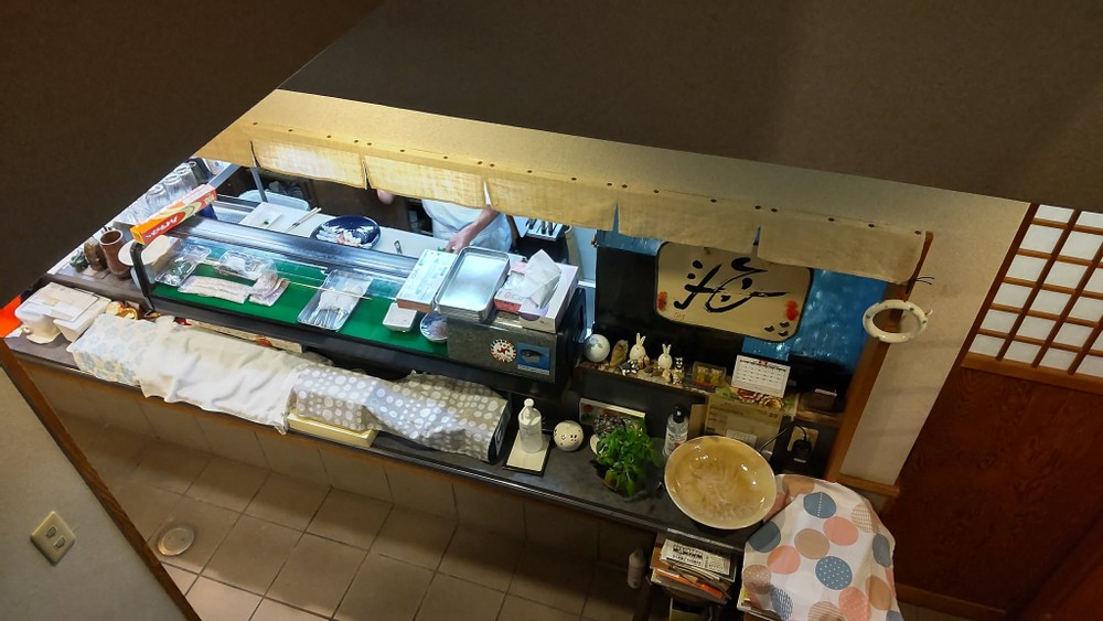 My husband had reserved a private room for us, and we went upstairs. On the way up, I saw two chefs preparing food.