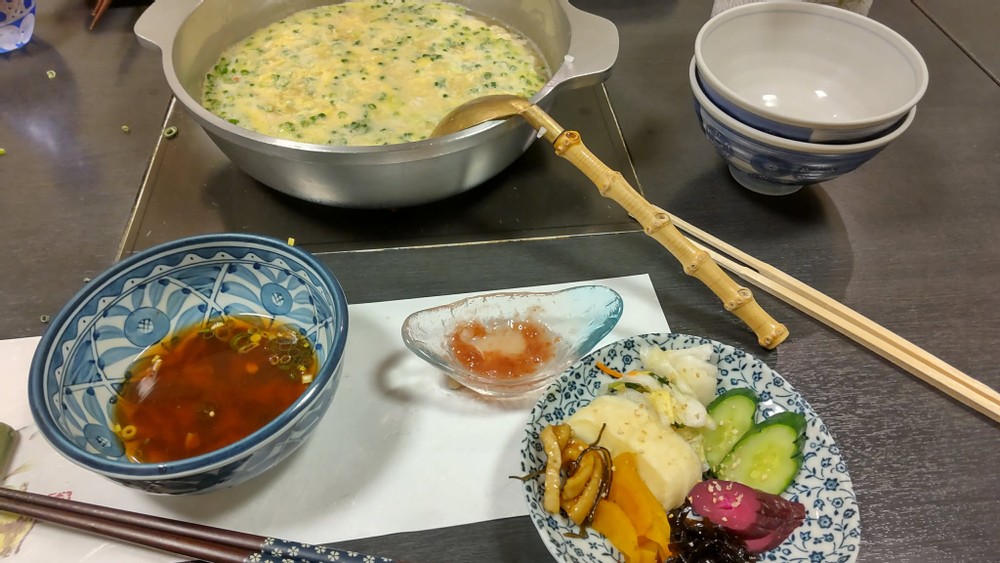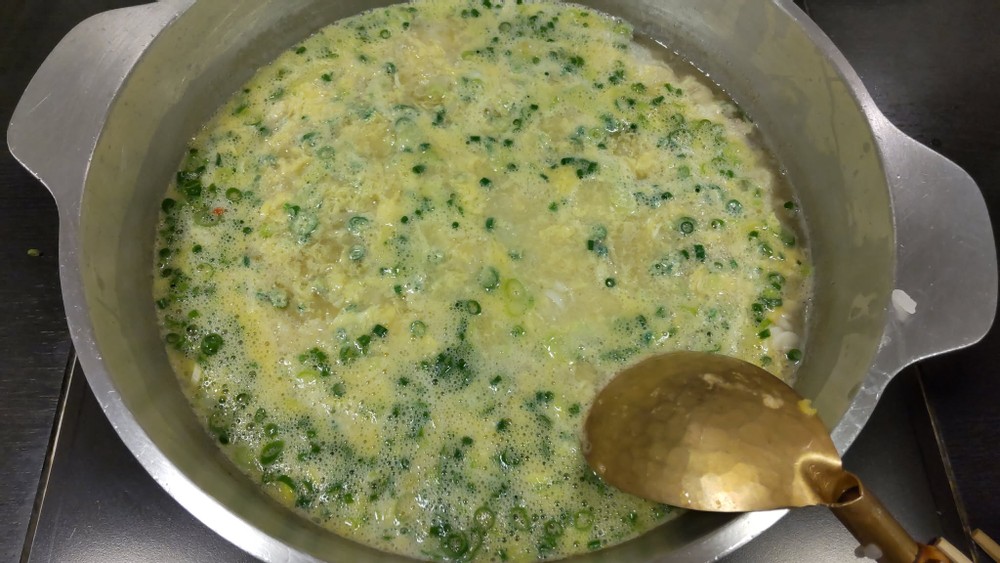 Zosui; rice cooked in the broth from the shabu-shabu.