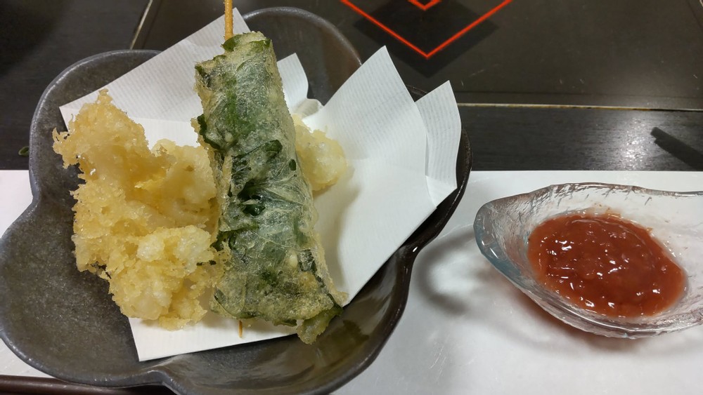 Tempura: including swim‐bladder and shirako (soft roe). You might gross out, but in Japan they are very fancy dish. I had swim-bladder in a soup, too. It tasted like mochi (sticky rice cake), and I immediately loved it.