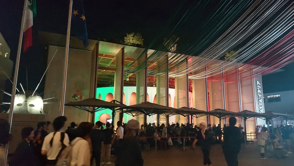 When we started waiting in the line, it was about 1p.m., but it completely became dark. The Italia pavilion was beautifully lit up. It was designed like the Colosseum.