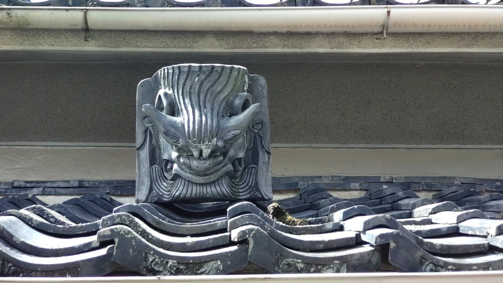 On the way to my husband and my favorite yakuzen (Chinese medicinal cuisine) restaurant in Nara prefecture, there is a spot where you can see onigawara (a type of roof ornament). They aren't something we usually come across.