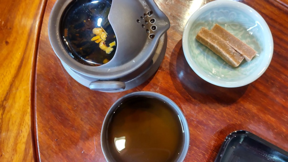 After enjoying our meal as usual, I took several photos of them, which have been put in the equal distance. The first three ornaments are called shichifukujin (the Seven Lucky Gods). They are believed to bring good fortune, and the three of them are smiling. They certainly look as if they could bring happiness.