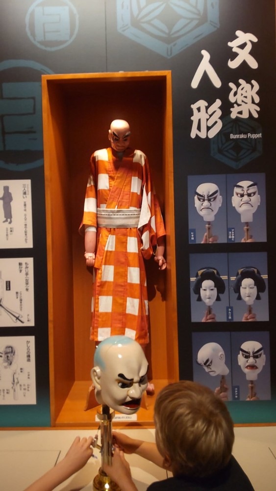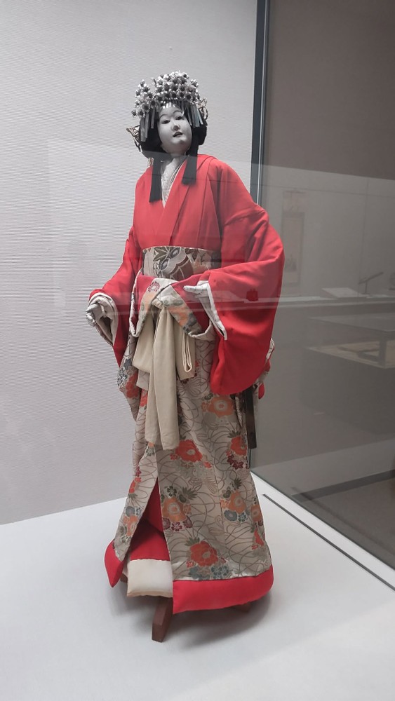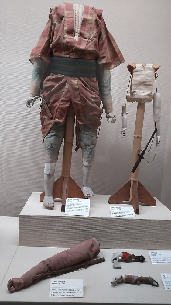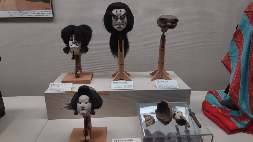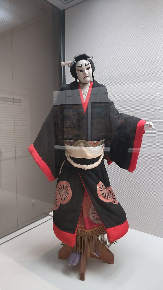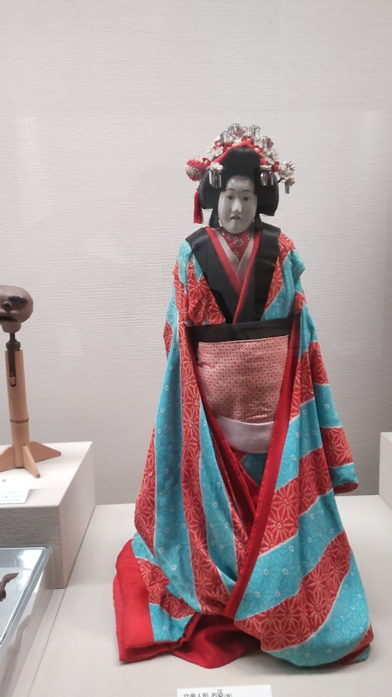 In the museum, several bunraku puppets were on display. One of my friends used to learn how to make these puppets. She once showed two of her pieces to me. She told me that making just one head took more than three years. She made kimonos for each head and showcased them at home. They absolutely look gorgeous.