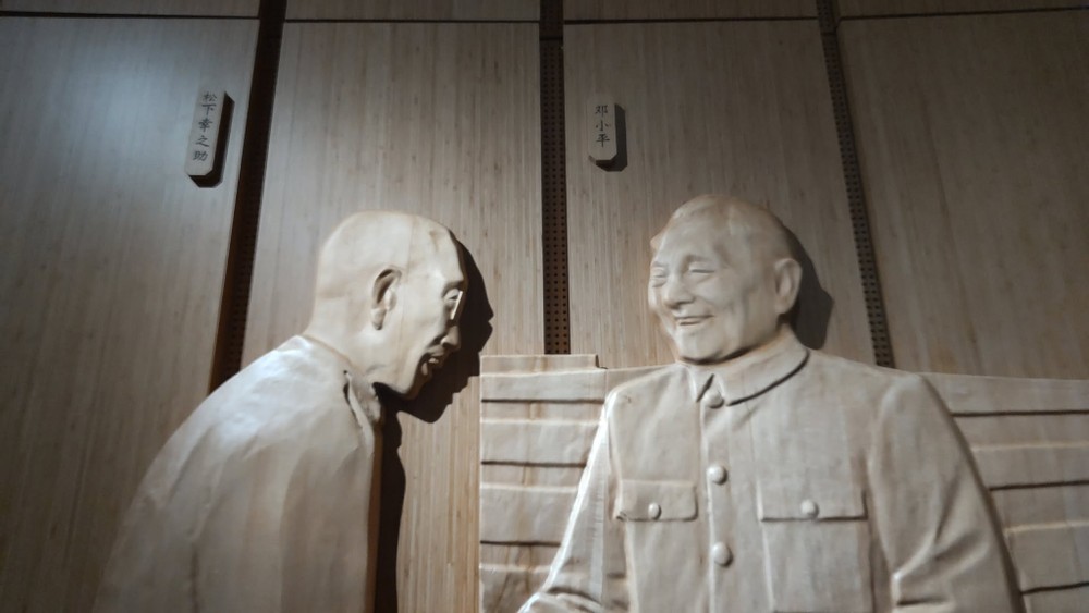 There was a display of Kōnosuke Matsushita (Japanese industrialist who founded Panasonic, the largest Japanese consumer electronics company) with Deng Xiaoping (politician, the leader of China back then). Matsushita visited China twice to discuss business with Deng Xiaoping.