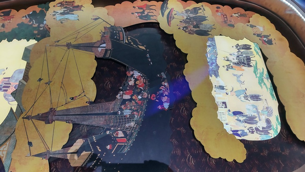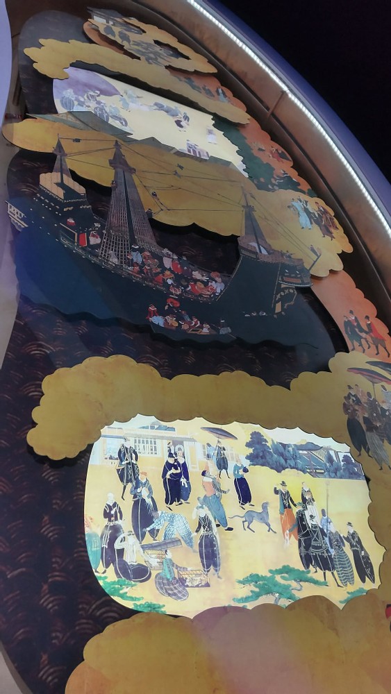 The theme of their exhibition was Portuguese black ships, which were merchant vessels from the 16th-centry. If you've watched the American drama Shōgun, you'll know what I mean. At that time, Portugal and Spain were competing to try dominating the world. They made an agreement called Treaty of Tordesillas, and Portugal tried Japan to make one of their colonies.