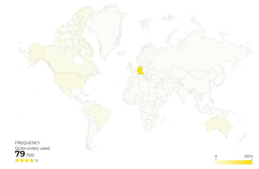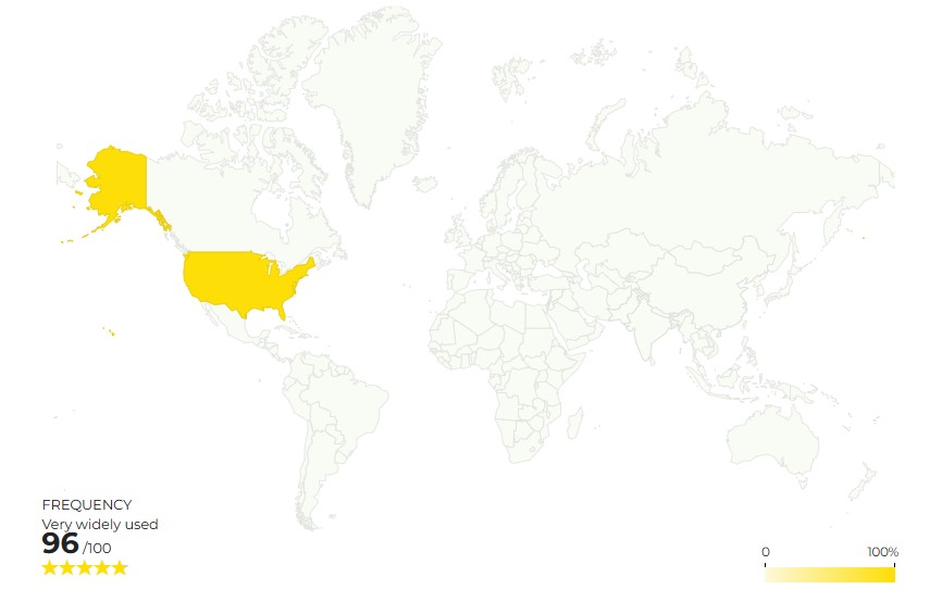 The first time, I typed in “as per usual” and scrolled down to look at the world map. It showed two yellow areas, and I thought, “OK, ‘as per usual’ is widely used here and here. Cool.”