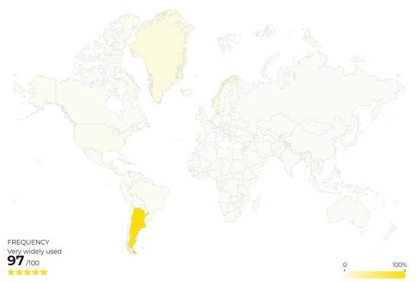 Then I eagerly went to check the map. It said that Argentinians say “Olé” way more than Spaniards! I can’t say I wasn’t surprised, but, well, at the end of the day, they speak Spanish too, so who am I to judge? But then my eyes caught something yellowish and even more surprising. Oh my! Look at that! Do Greenlanders say “Olé” too? Really? Get out of here...
