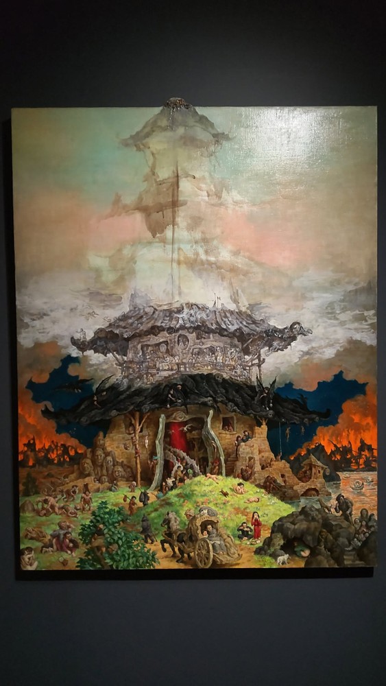 Some of his paintings were allowed to take pictures, so I'd like to share them with you. The painting in the picture below was unfinished and became his last work. He passed away from cancer at the age of 61. The intricate details of this piece were amazing.