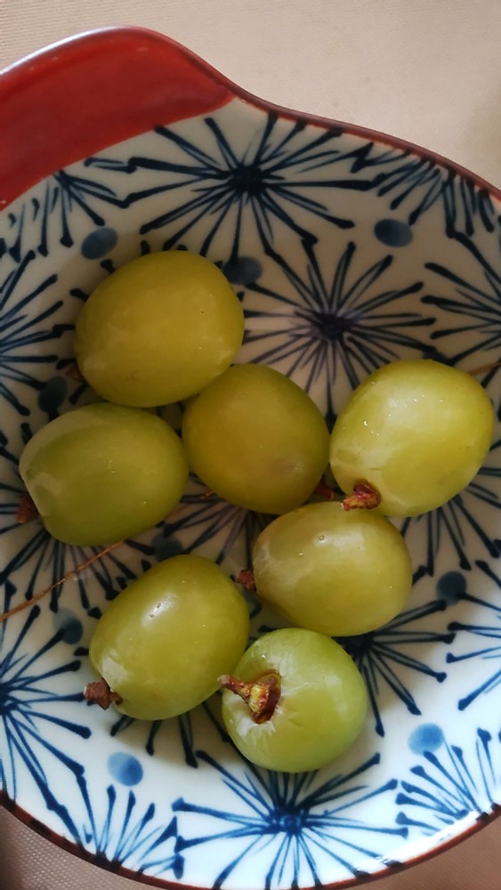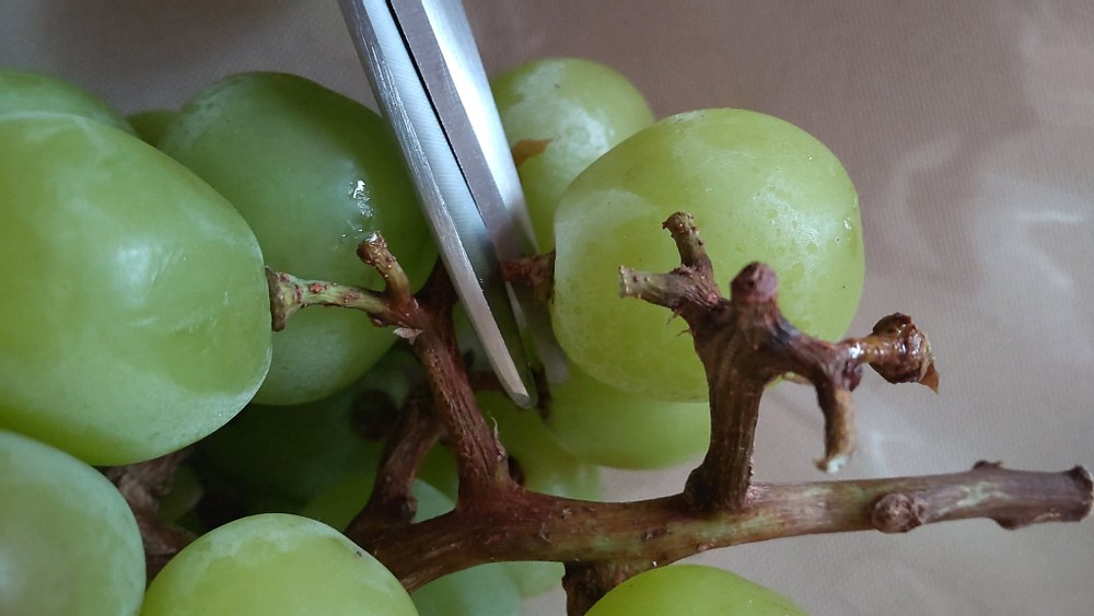 Here's a little tip of how to keep Shine Muscats fresh. If you cut each grape off the stem and store them in the fridge, they'll stay fresh longer.