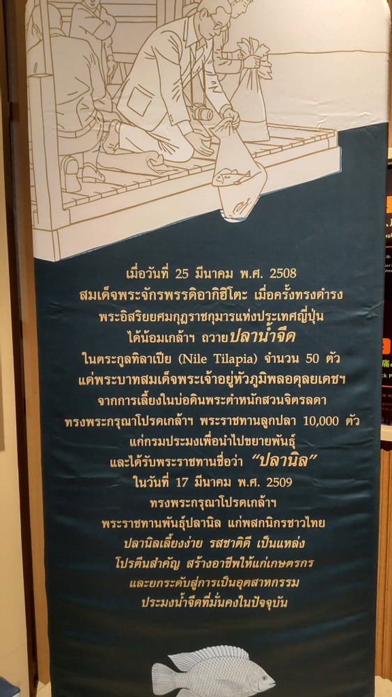There is an interesting story about tilapia ( a kind of fish). When the former emperor Akihito was a prince, he visited Thailand in 1964. Since he was an expert of fish, he enjoyed visiting fish farms. Back then, people in Thailand couldn't get enough nutrition. When he realized that their fish farms hadn't worked well, he suggested growing tilapia because it's one of the easiest fish to do. After returning to Japan, he sent fifty tilapia to the King Rama IX. The king grew them in the palace and quickly succeed to increase over 1000. Since then, tilapia has become one of the top of resauces of protein, and it's named 仁魚 from one of the kanji characters of Akihito (明仁).
