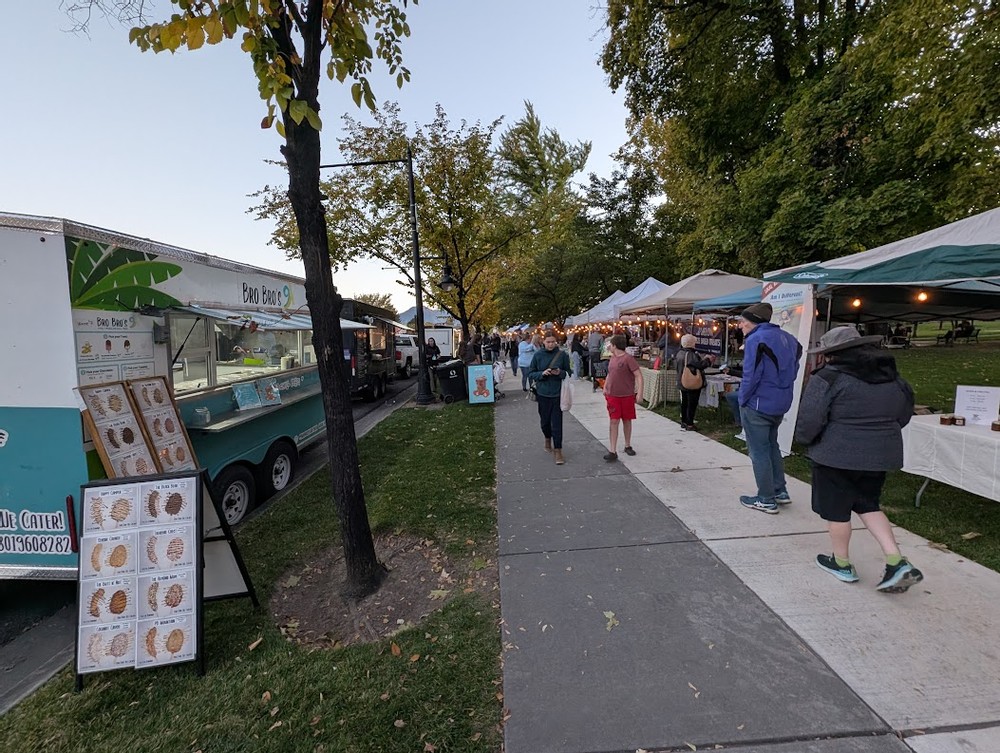 アメリカのファーマーズマーケットには農家の野菜などを売るだけでなく、地元の職人が手作りの品も販売するのです。また、地元のフードトラックも出店しています。