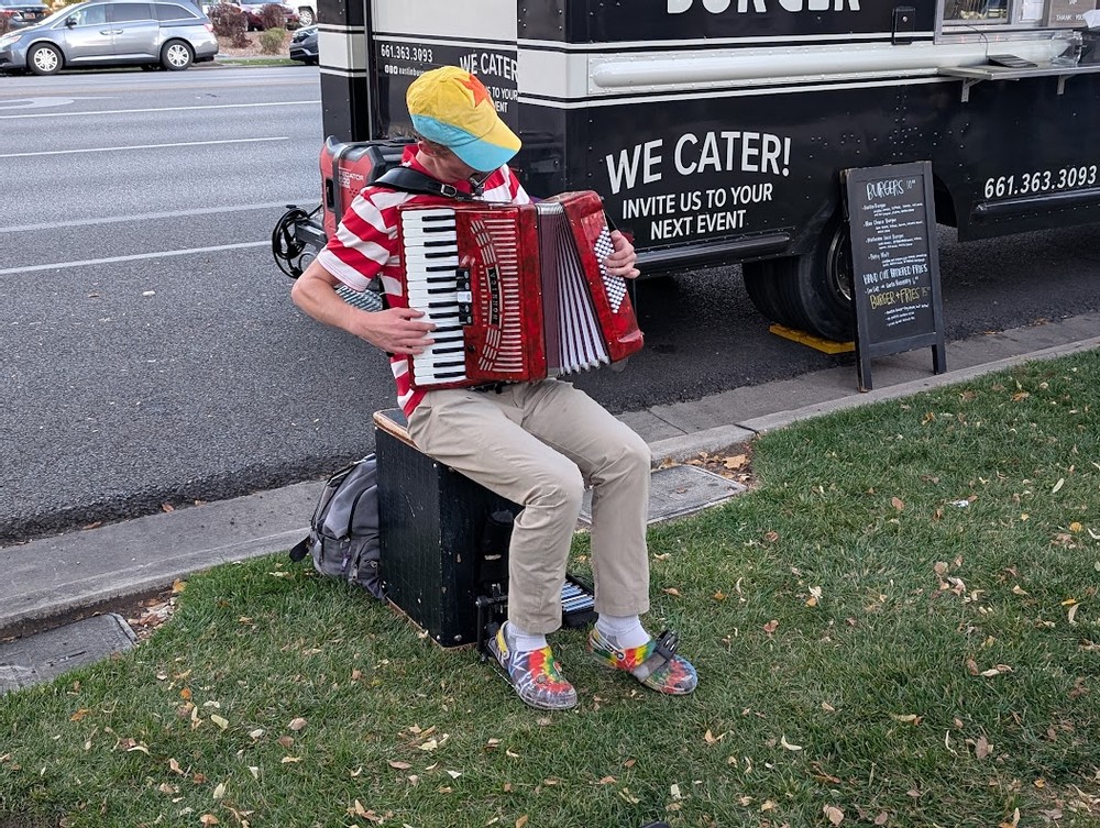 そこで、野菜を買いたくて出かけてみました。ウロウロしながら、面白いものを見かけました。まず、ハーモニアとアコーディオンを弾いている人を見かけました。とても上手でした。