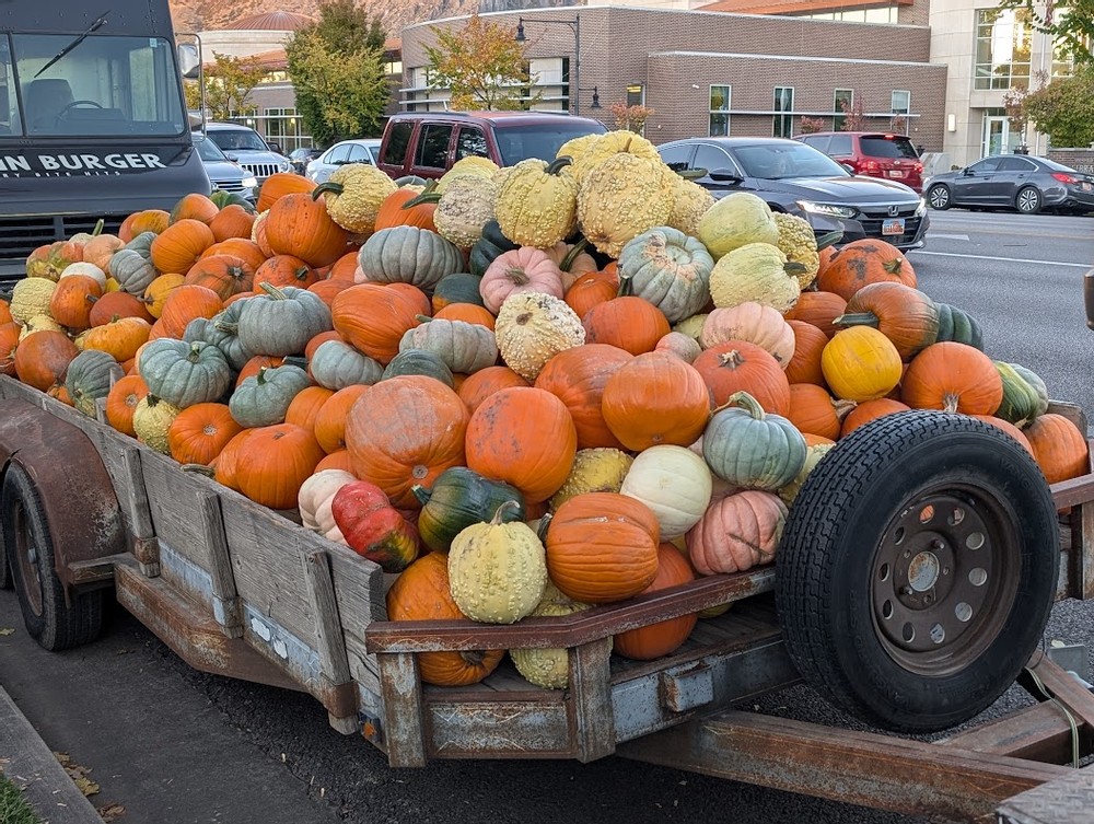 アメリカの秋といえば、やっぱりかぼちゃですね。色んな種類のかぼちゃが積まられたトレーラーも見かけました。かぼちゃの種類の数はびっくりするほどですね。