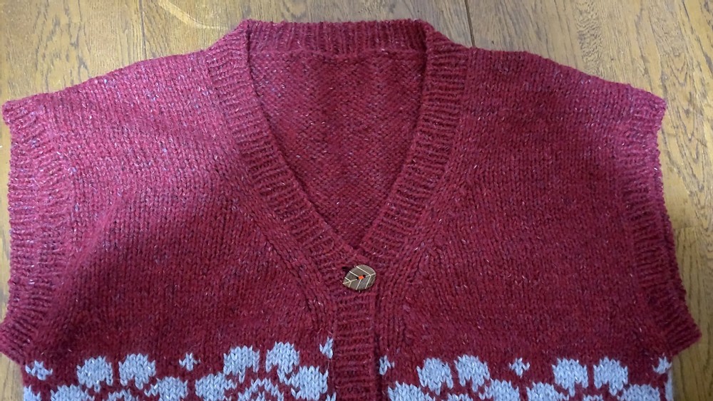 This post is a sequel to the previous entry. This June, my seven knitting friends and I decided to knit the exact same vest design. We'll meet up again in December and hold a little party to show our finished vests. Since then, I've been worked on mine, and I finally completed it recently. It was so much fun to knit, and I really enjoyed the whole process.