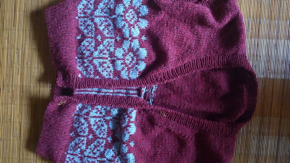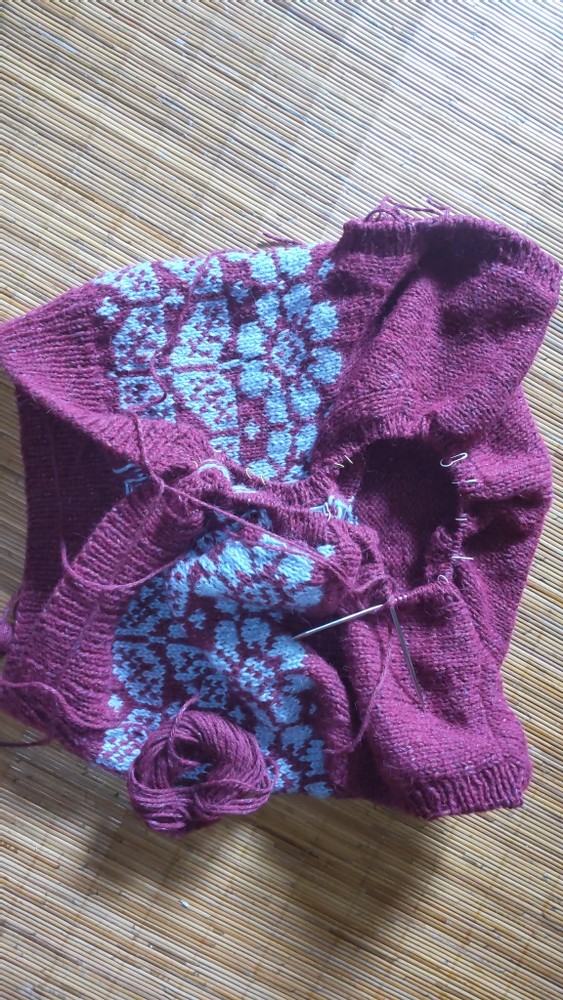 Then, I cut down the center of the steek. It was fascinating to learn that I can create complex patterns with any kind of yarn using this methods.