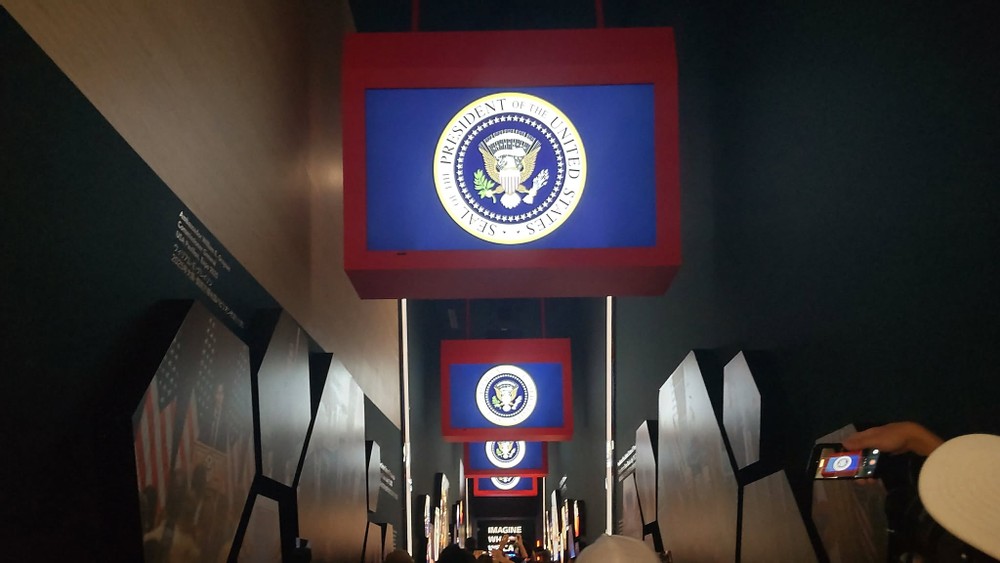 Finally, we were allowed to go inside. A large panel of the American President and the First Lady welcomed us.