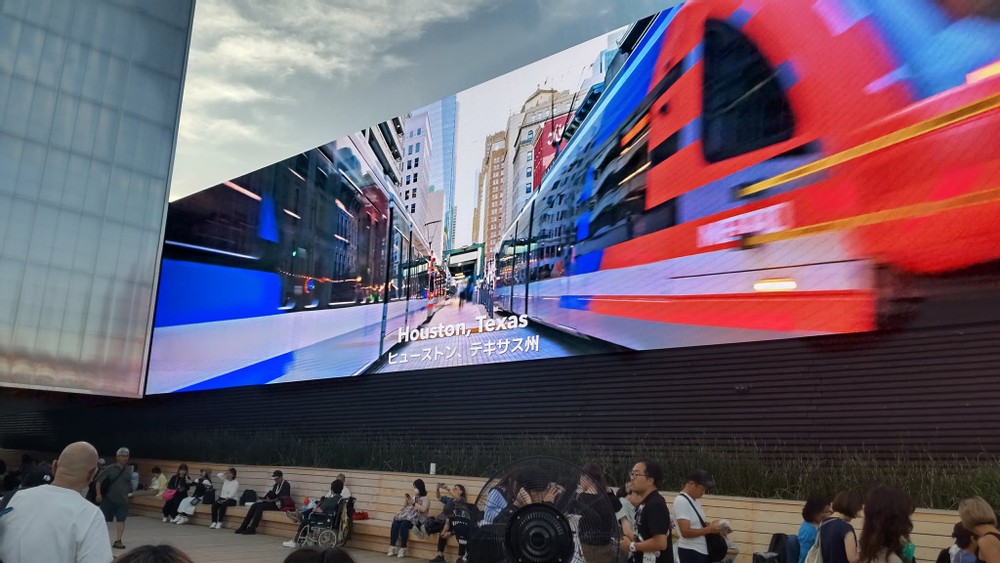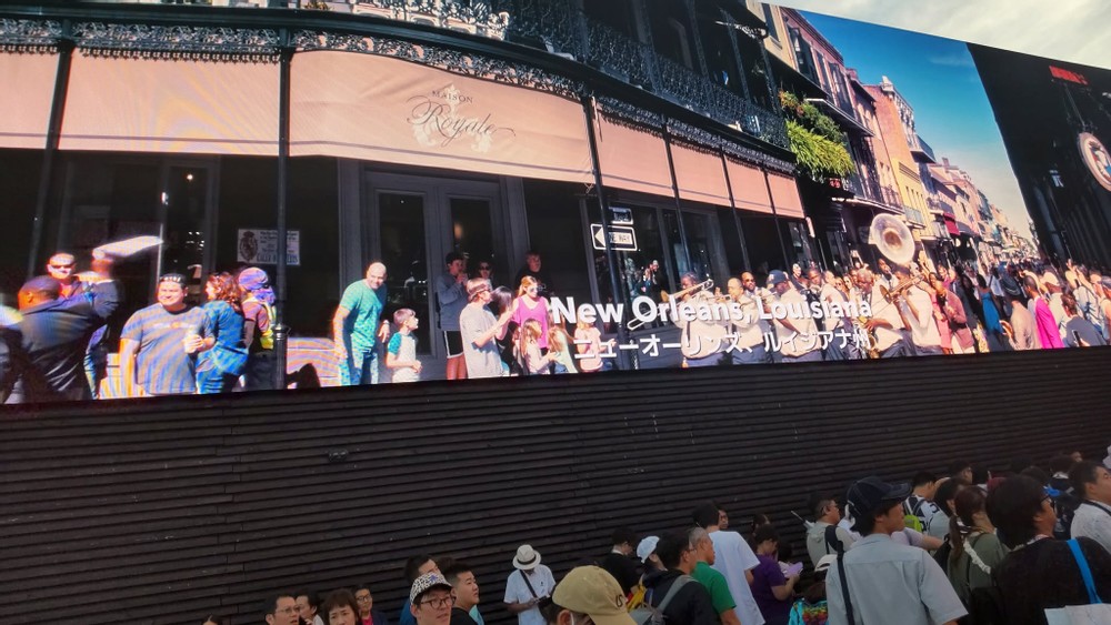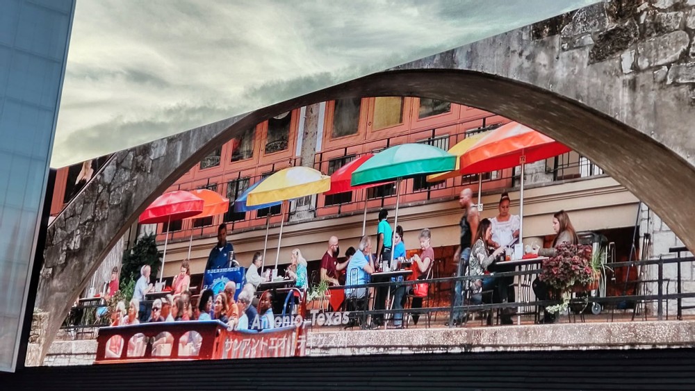 Fortunately, in front of the pavilion, there was a huge screen showing famous tourist destinations in the US. It entertained the whole waiting time. Whenever a place I had visited with my American friends appeared, I felt as if my friends were right there with me. For example, I met my Texan friend, Matt, for the first time in person in San Antonio even though we've already talked for eight years online. You can read about my experience in San Antonio here.