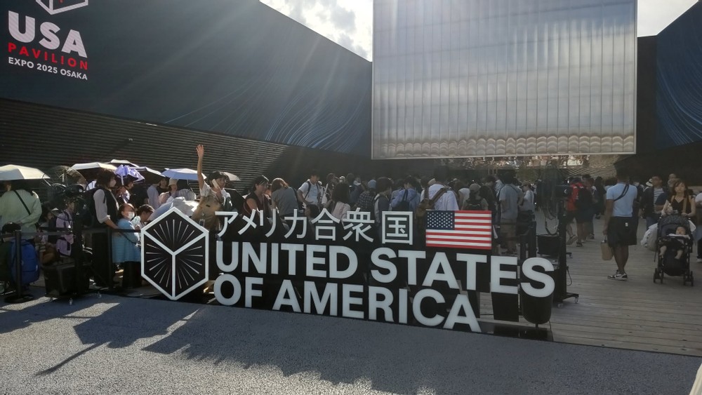 My last report about Expo 2025 is about the United States of America. I really wanted to visit as many as I could, but toward the end of the Expo, it was getting harder and harder for us to get reservations. I had to choose one or two countries, so I couldn't ignore the US. There are several reasons: From 2010 to 2018 I constantly went abroad to the States to take porcelain painting lessons to improve both my painting and English skills. While being there, I met so many American people and made friends with them. That's why I feel the States is my second motherland.