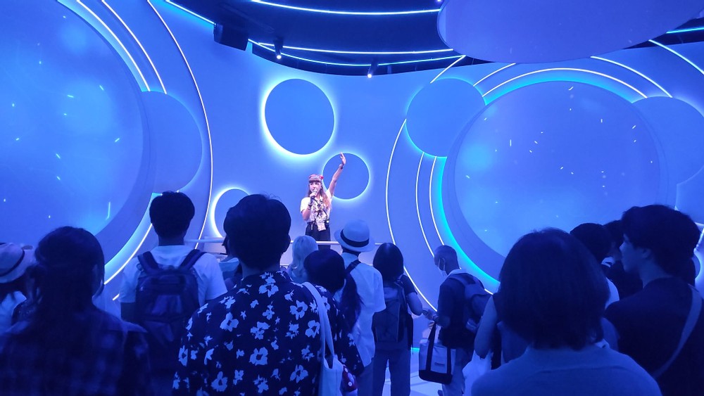 In the first room, a guide taught us some English phrases such as "Wow!", "It's important", and "How great!". For example, she said something, and we responded, " Oh! Wow!" It was fun.