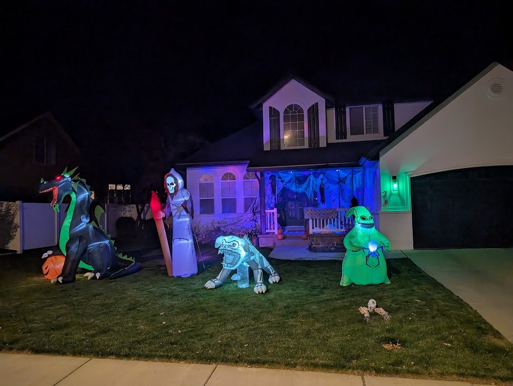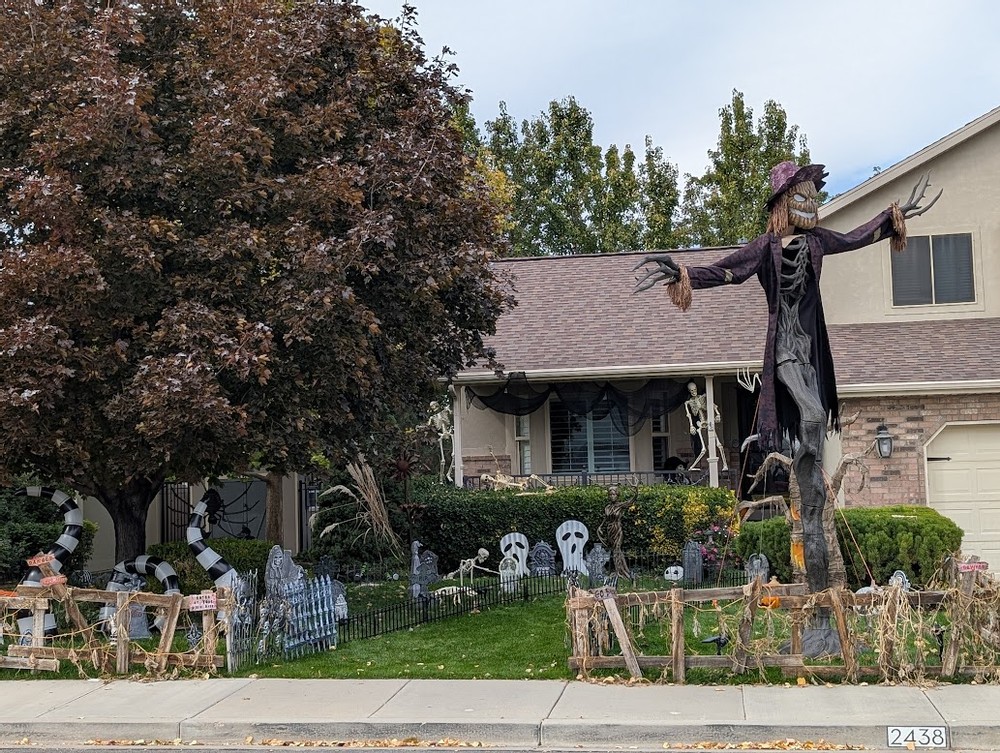 僕の近所にはハロウィンのデコレーションをする人がたくさんいます。ぜひそのデコレーションの写真を見せたいです。