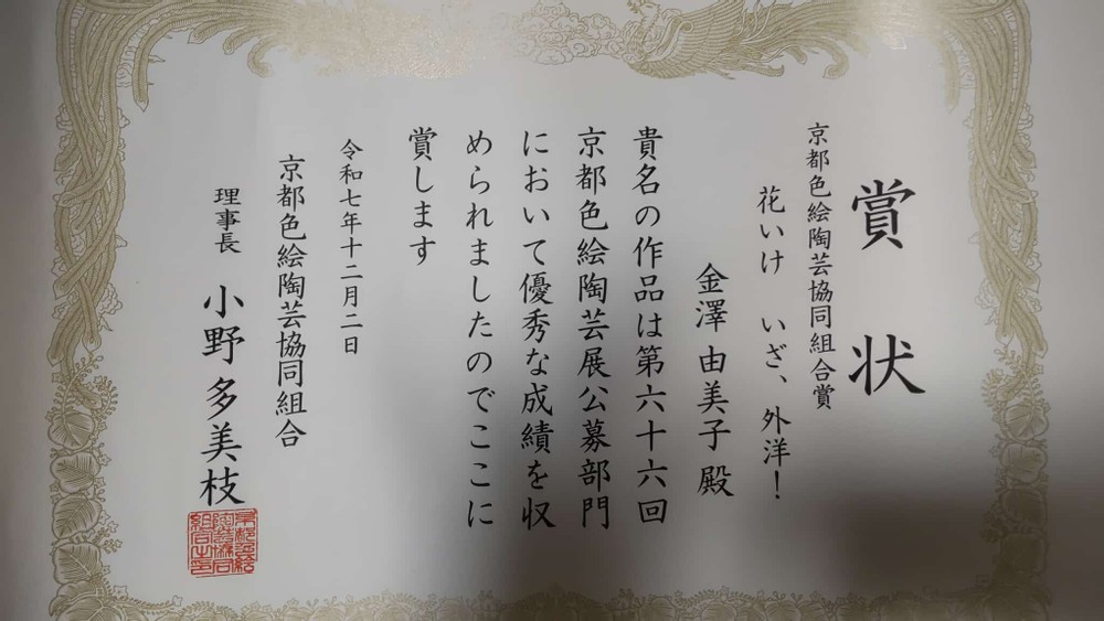 After the ceremony, the reception began. I've attended many award ceremonies for porcelain even out of Japan, but I'd never attended such a formal one for professional artisans before. People there were graduated from ceramic schools and trained as a craftsman, and then built their careers as independent artists selling their own works. When I started painting again, I'd never thought I would end up being a porcelain artist at all. Life is fascinating, isn't it?