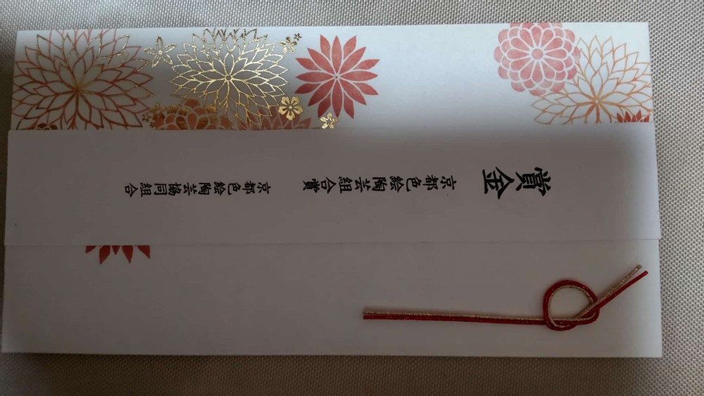 I was the only participant who wasn't the member of the association yet, and the ceremony began with awards for the members.. I realized that there were many important people for the porcelain industry in Kyoto such as the CEO of Tachikichi, the Kyoto mayor, the CEO of Asahido who boutht three of my competition pieces, the representative from Kyoto Chamber of Commerce and Industry, and much more and thought it was such a serious competition once again.