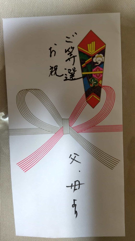 @CocoPop Thank you always! Yes, it's 父母より, but it's not a card and an envelop which we put money in. It's called のし袋 in Japanese.