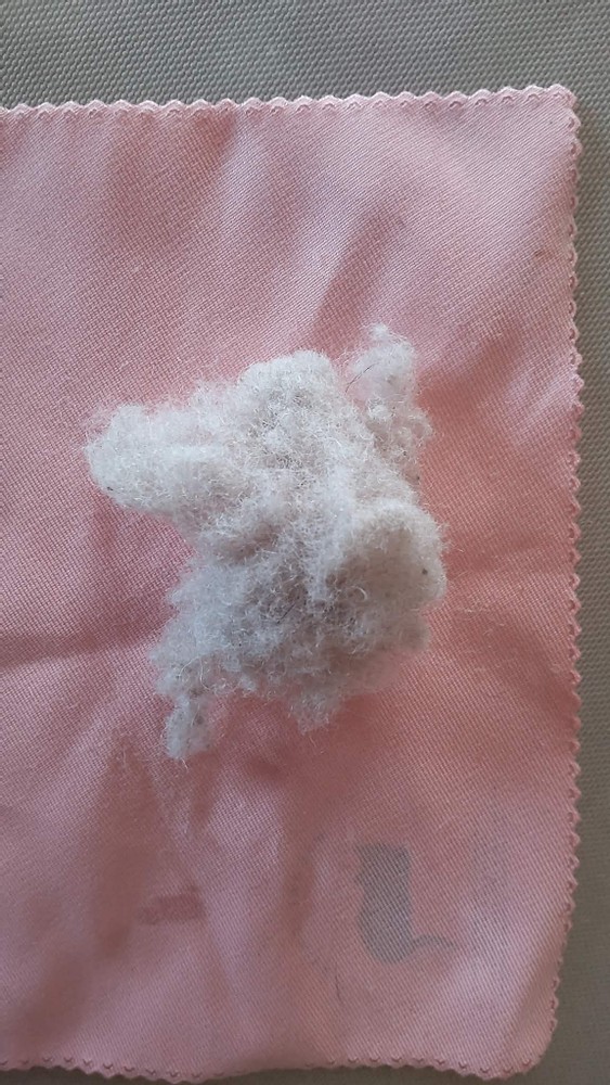 When I opened the container, inside was full of wool fuzz, so I had to clean it out. The part was a bit annoying.