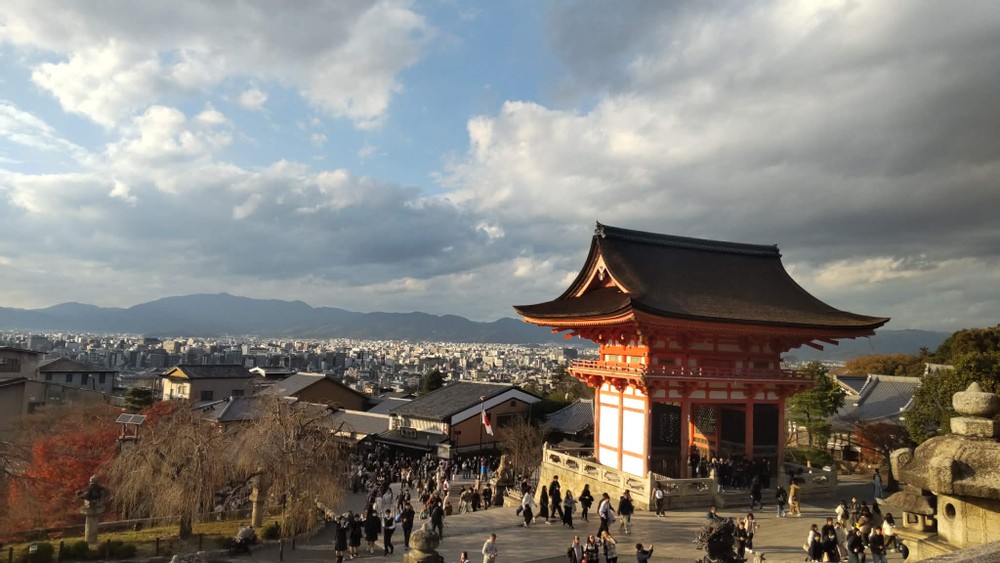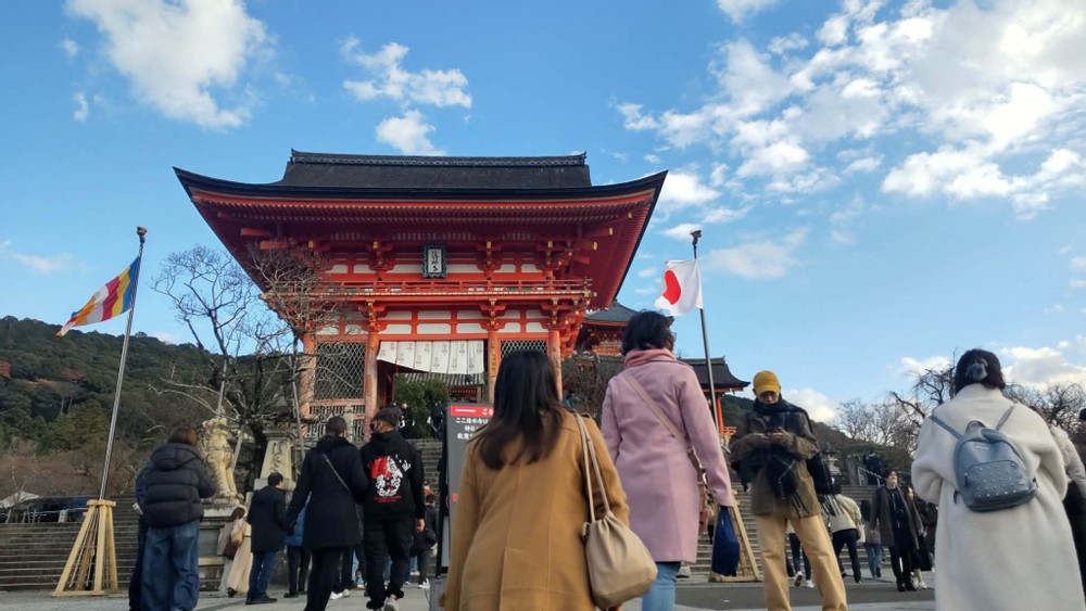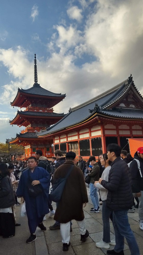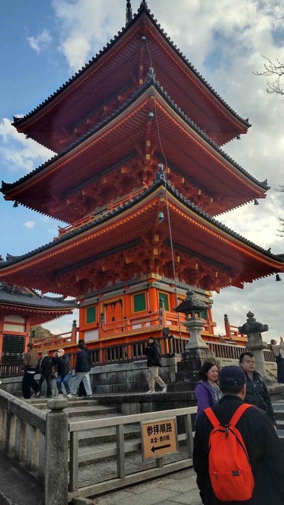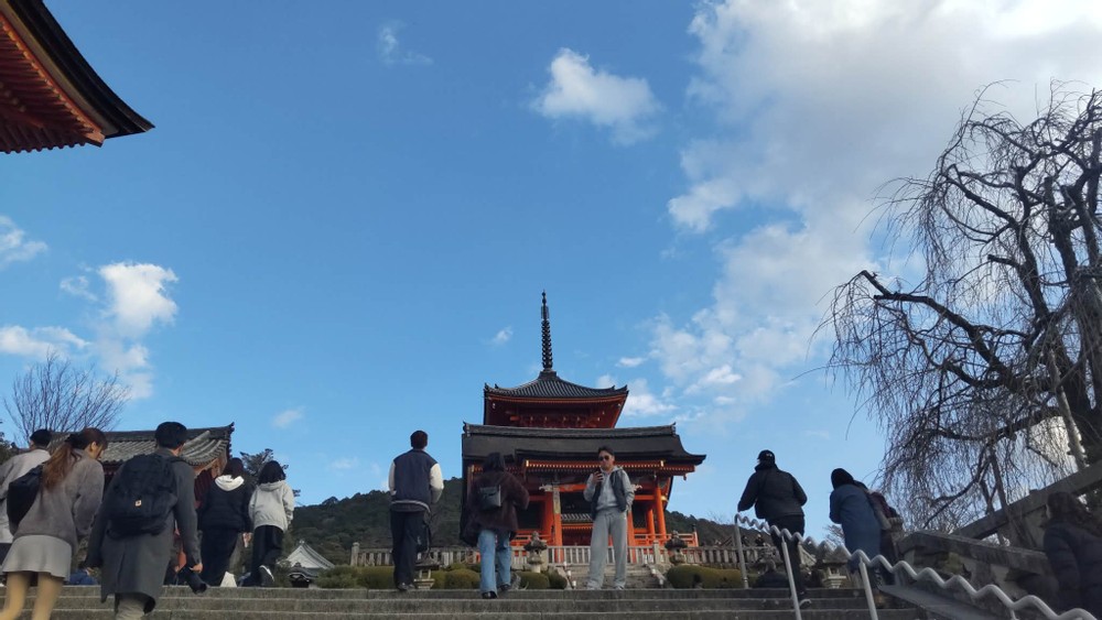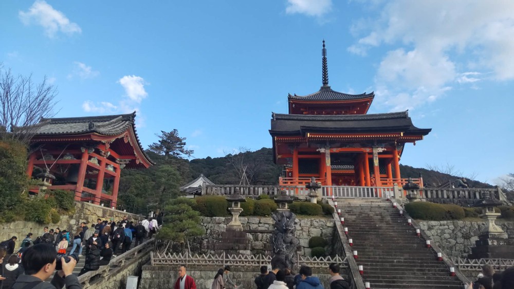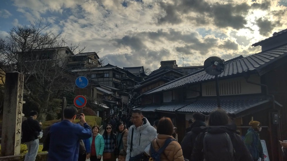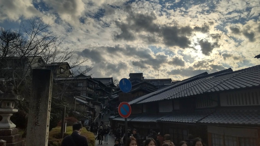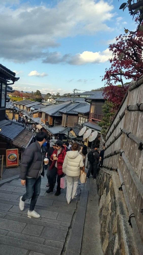 We passed through her and walked up the slope toward Kiyomizu-dera.