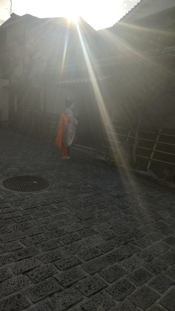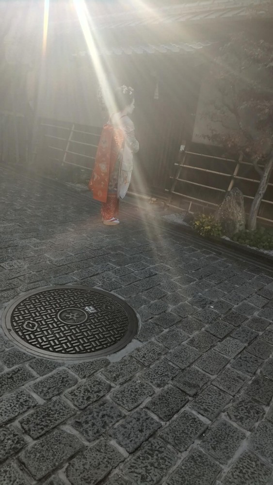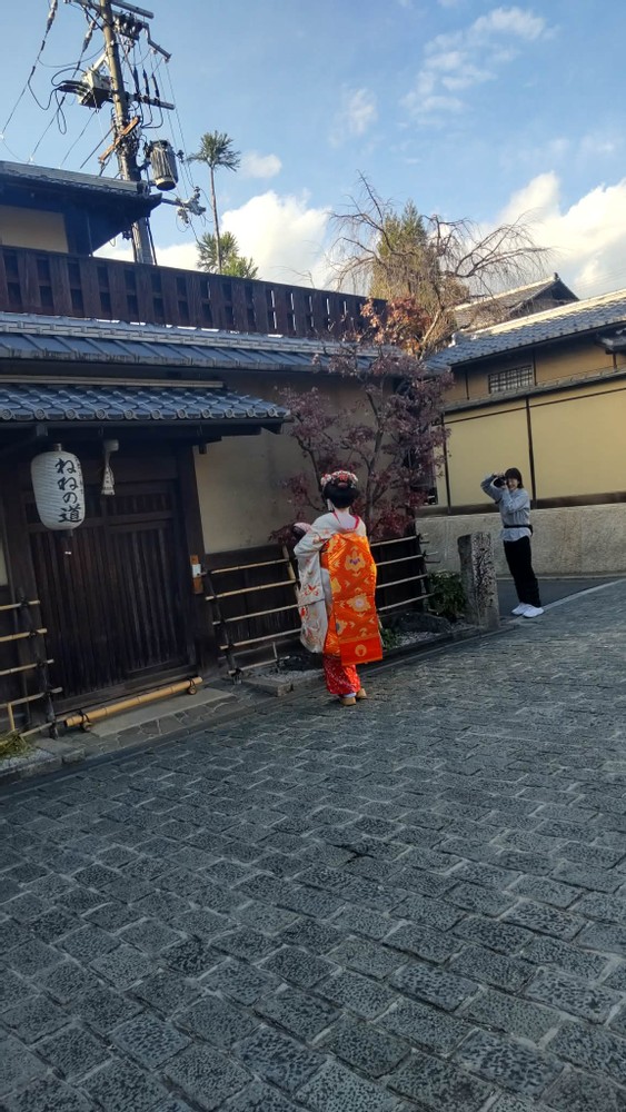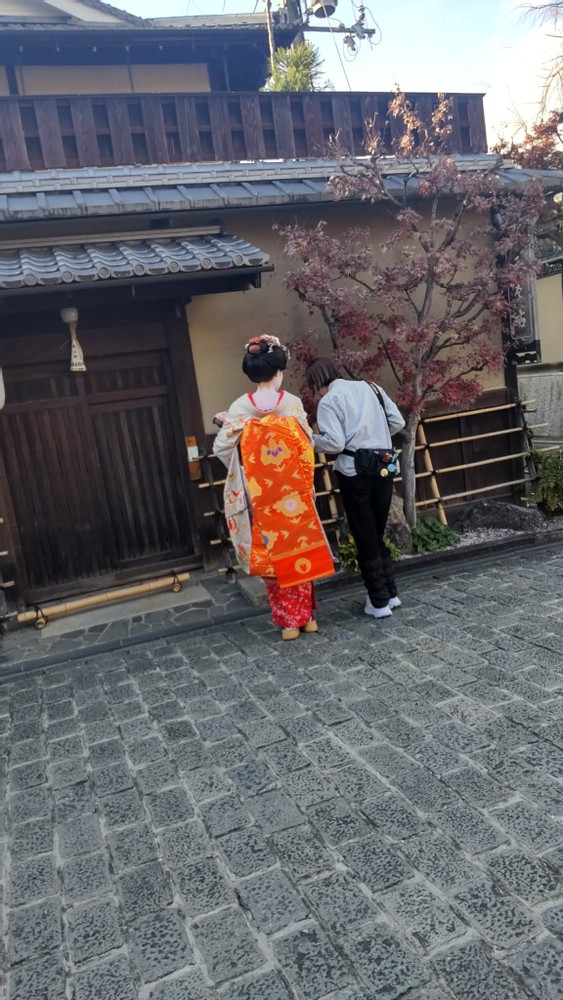 After leaving Kōdai-ji, we came across a person who was wearing a kimono like a maiko (a geisha's apprentice). When I was young, only real maiko wore that style of kimono, but nowadays, everybody can rent one. It's hard for me to judge if the girl is a professional one.