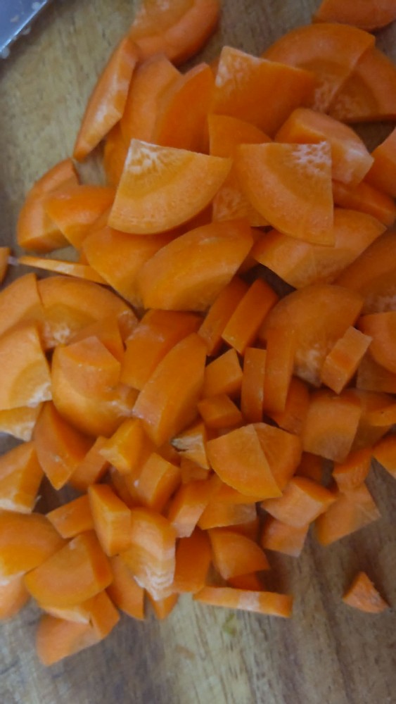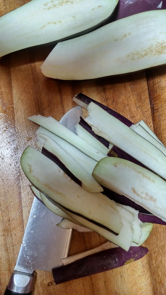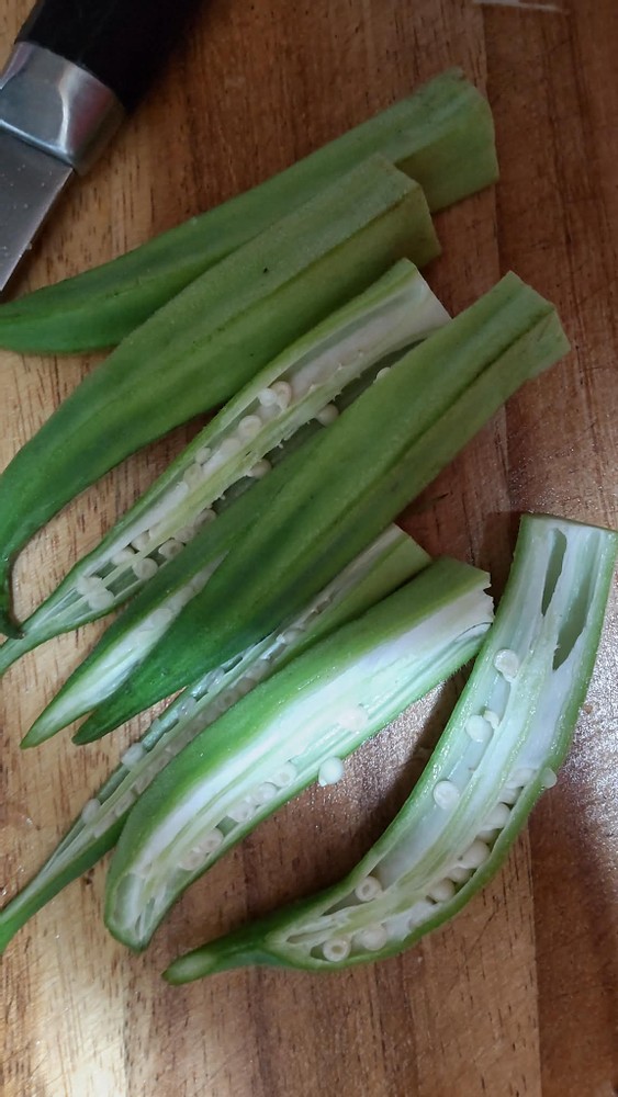 First, I sliced some vegetables such as onions, carrots, okras, and eggplants.