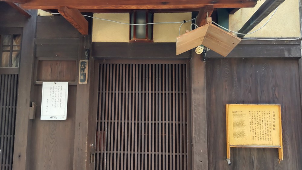 The picture below show an ochaya (teahouse) where geisha and maiko are invited to perform. They dance, play Japanese musical instruments, sing Japanese traditional songs and more. I think the ochaya in the picture hasn't been used for years.