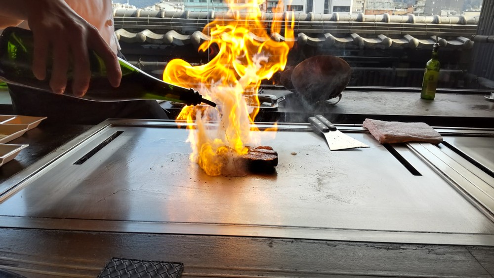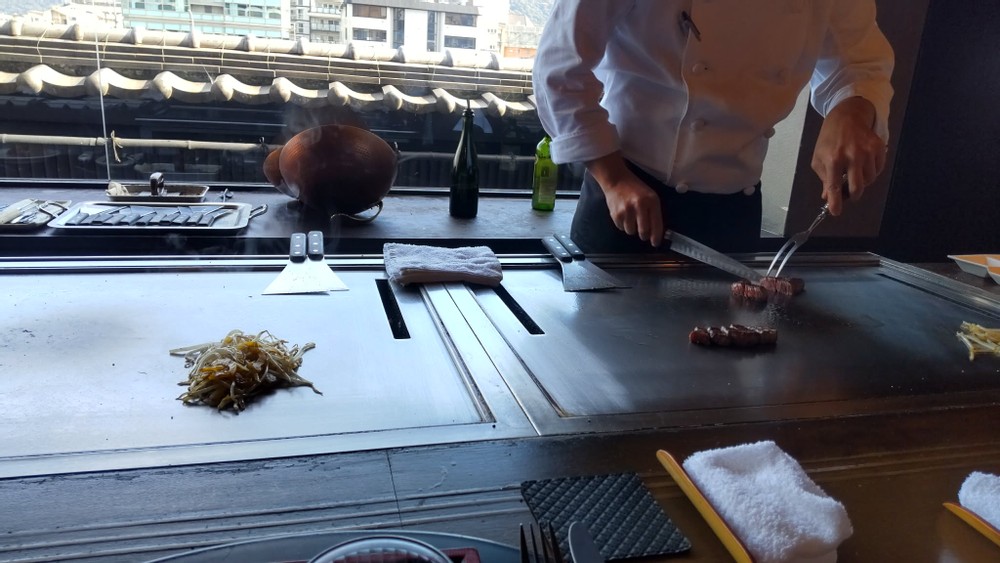 I have experienced teppanyaki in the US as well, but Japanese teppanyaki doesn't show performance like you can see in the US.
