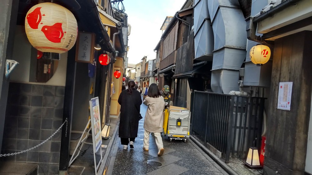 Ponto-chō in Kyoto is famous as the place where you can see geisha and maiko (apprentice of geisha). When I was young, we often saw maiko there.