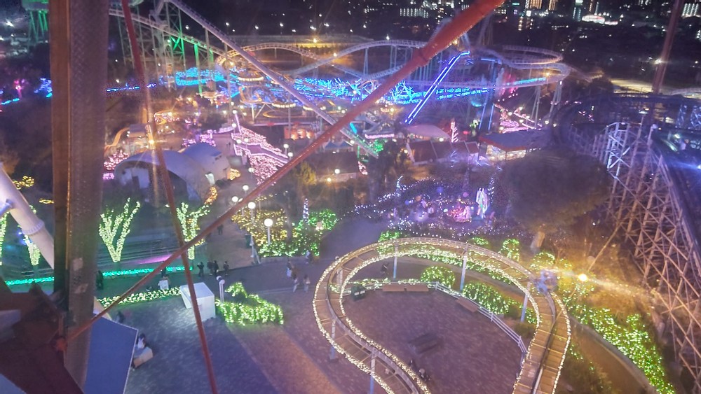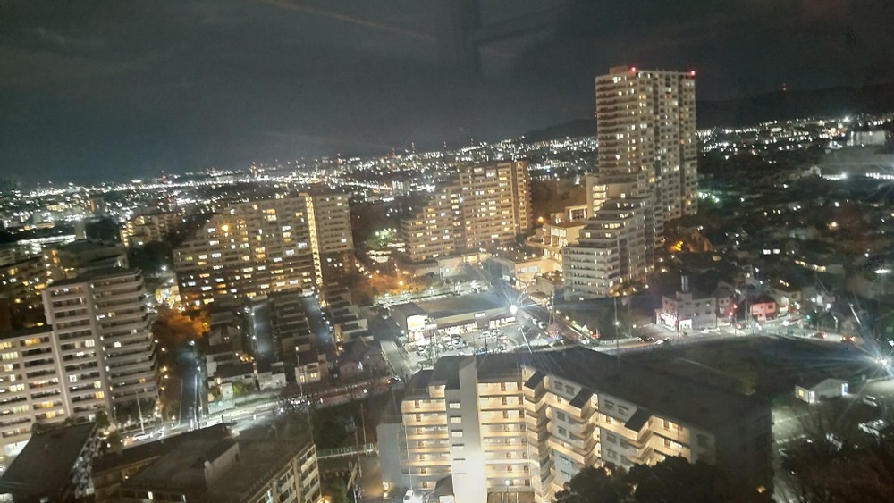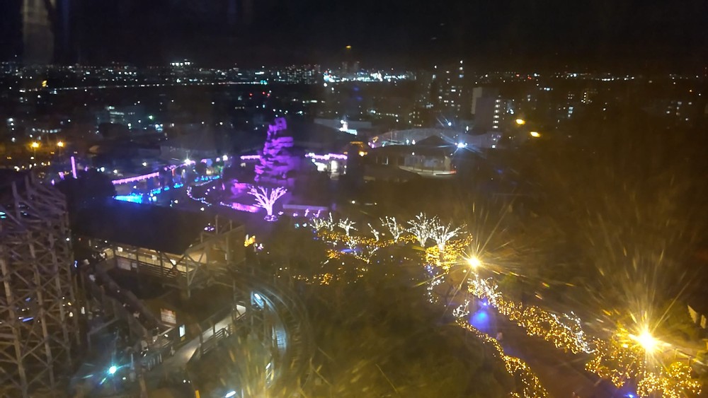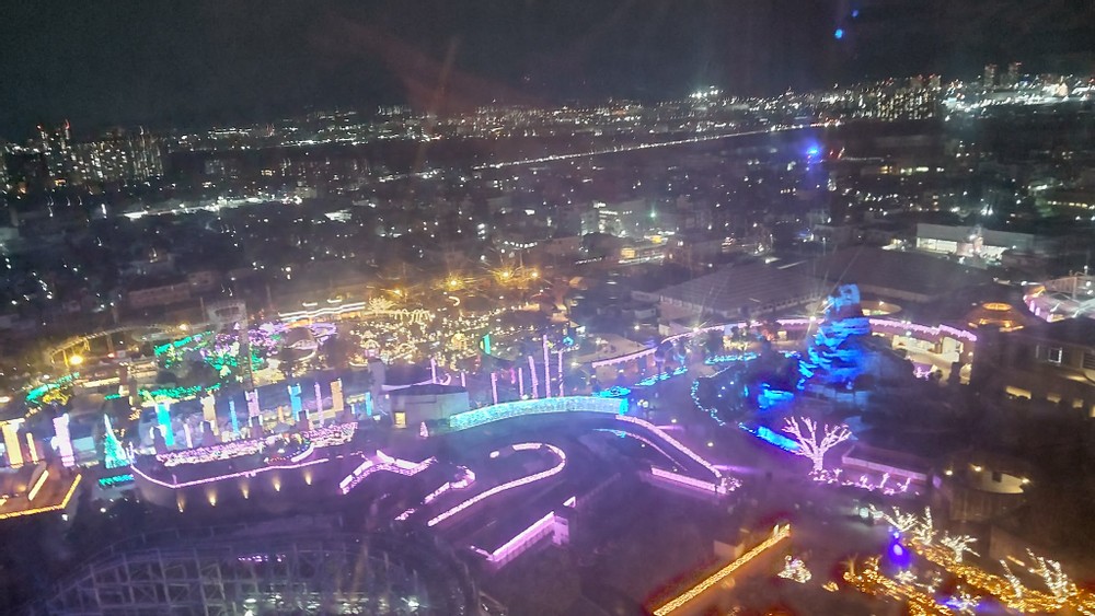 I don't think he fully understood what he was going on, but I guess he enjoyed the atmosphere. We were impressed by the beautiful night view. I'm glad that he seemed not to be afraid of the height.