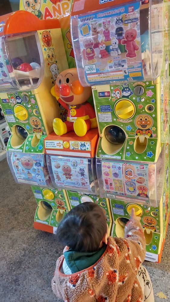 I think what he loved the most was the gacha machines. When we visit next time, he'll grow more and be able to enjoy more rides.