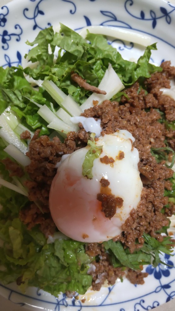 I put an onsen tamago (Japanese style soft boiled egg) on the very top.