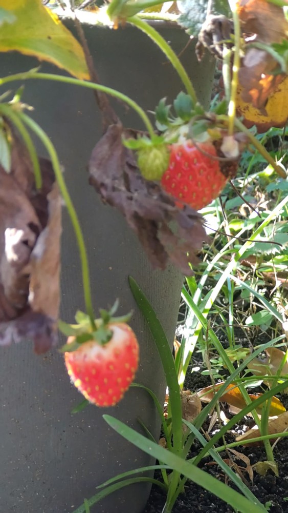 My strawberries are still growing, but some leaves have started turning orange.