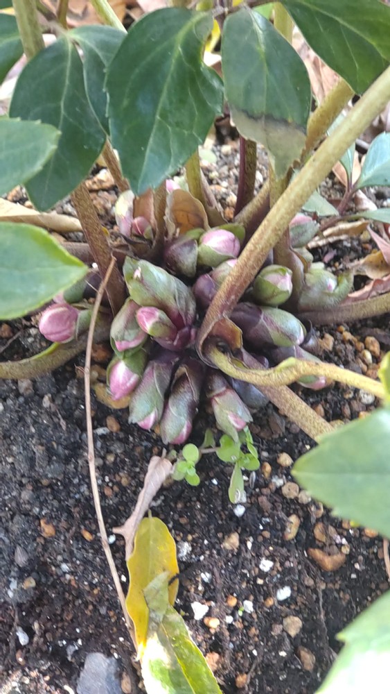 The most exciting plant is my Christmas Rose. They also have created lots of buds. I replanted it into the ground from a pot, and it seems like it likes the new spot.