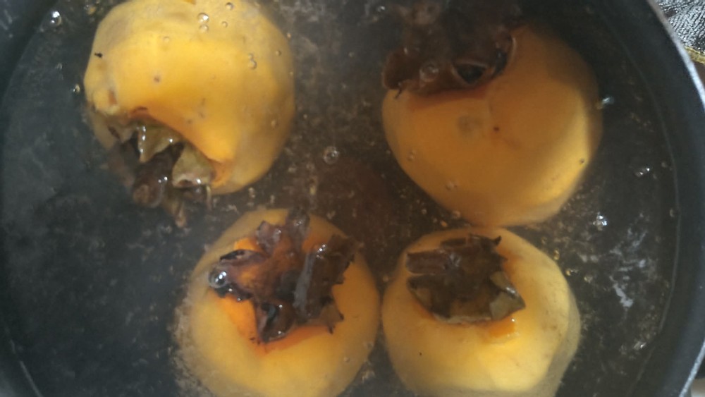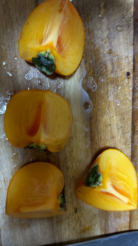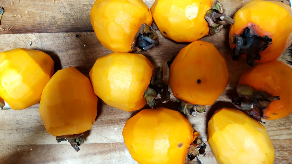 The first three pictures show fresh persimmons, and I usually eat them the way. They're harvested in the fall and are one of my favorite fruits.