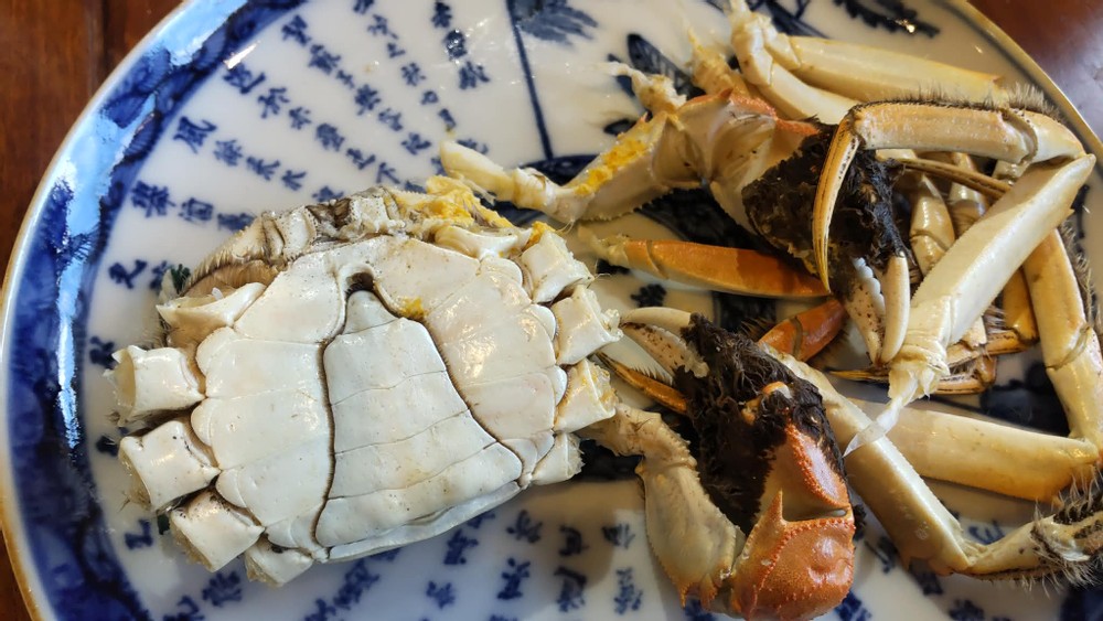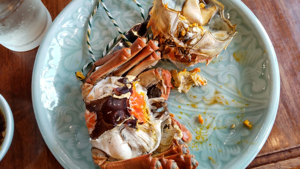 Crabs were ready to eat. The chef boiled them and served one to each of us. We started with the female crabs.