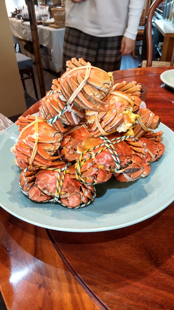 Last year (if you're curious about last year's meal, you can click here), my husband and I had Shanghai crabs by ourselves, but this year we invited our daughter and her family. The five of us went to Nara Prefecture to enjoy them. The crab season is in December, so it became our year-end-party.