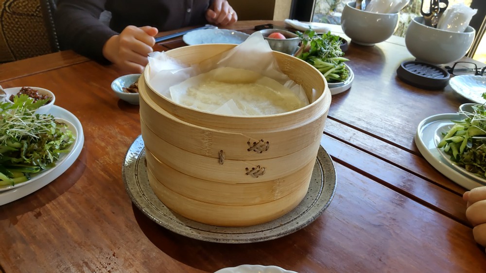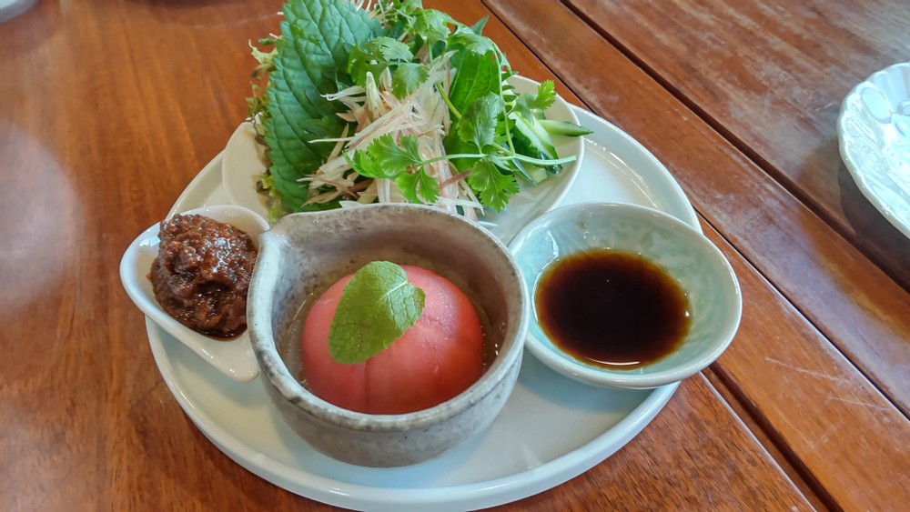 We wrapped a variety of vegetables topped with niku-miso in several sheets of rice paper and had them. They were delicious. I love their homemade niku-miso, and this year I made my own doubanjiang to make it. Mine is good, but theirs are much better. I have no idea how they make such tasty niku-miso.