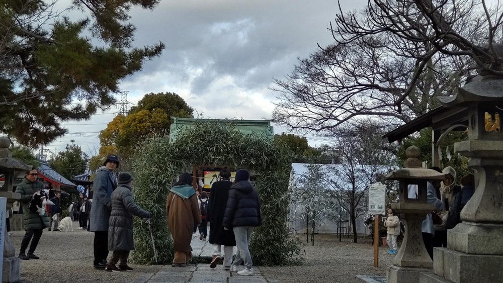When you go through a torii (a gate), you can see a big ring, which is called 茅の輪 (chinowa). There is a specific ritual for passing through it, but I was with my little grandson, so I skipped it. The rest of family members followed the instruction. First, they bowed once, stepped into the ring and walked to the left. They then returned to the starting point and bowed again. Next, they stepped through the ring and walked to the right, returned to the starting point and bowed once more. Then they passed through the ring again, walked to the left, returned to the starting pint and bowed. Finally, they went though the ring one last time and walked strait to the main hall.