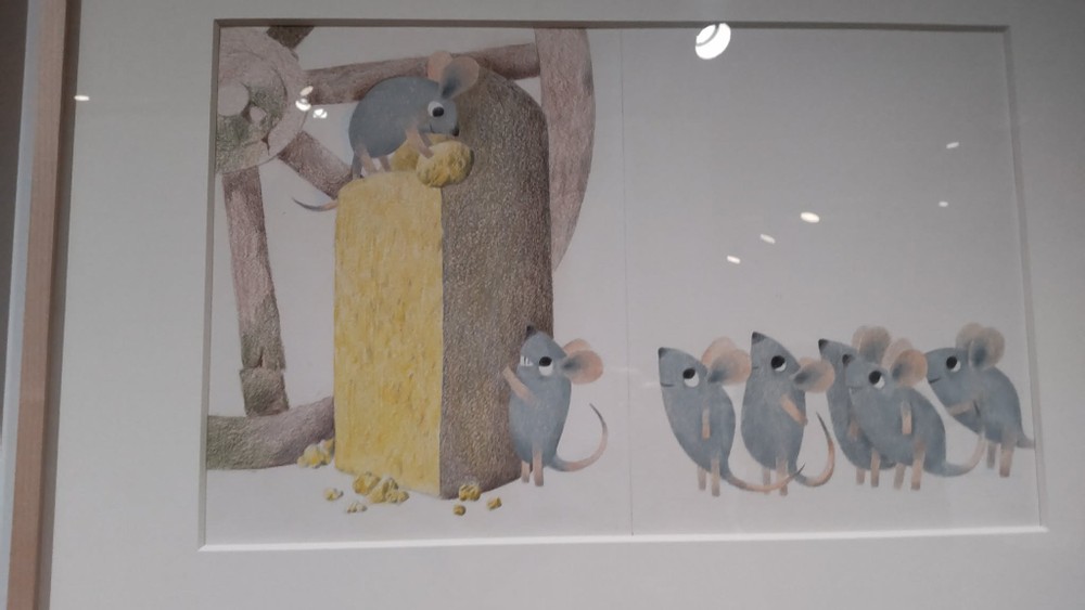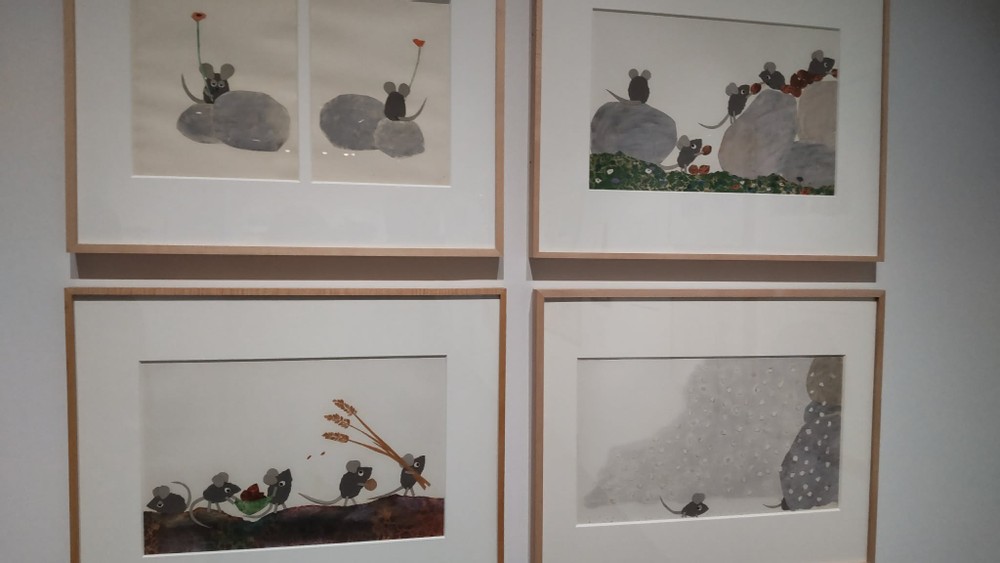 Last month, I attended an art show featuring Leo Lionni in Kyoto. He is famous one story called Swimmy in Japan because the story has been in a Japanese textbook for the second grade. I've known him because of the textbook, but I prefer his other picture books.