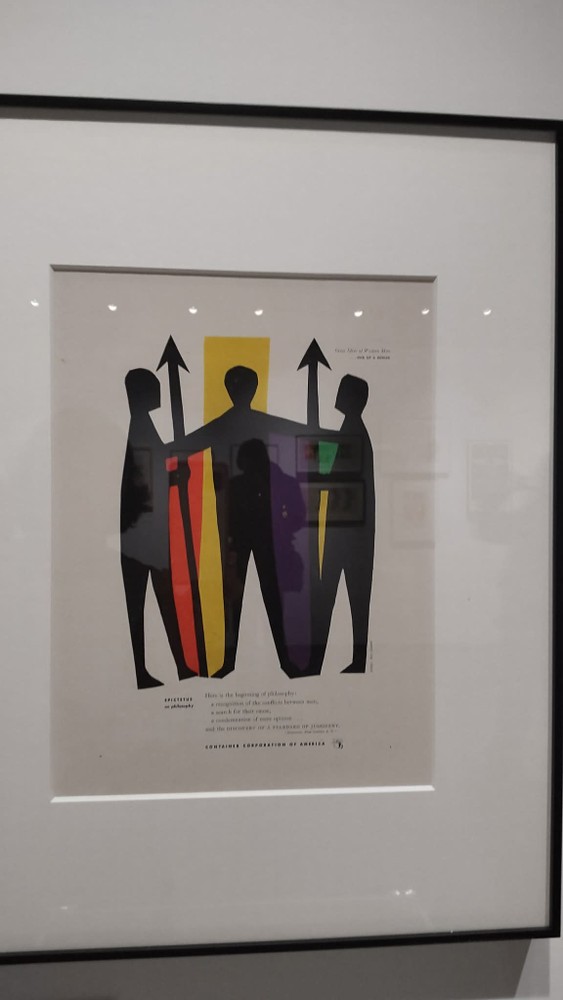 This exhibit was very interesting because it traced his career step by step. Although he changed his professions many times, he was always connected to art. He worked as an illustrator in the U.S. Then, he became a graphic designer and later an art director.