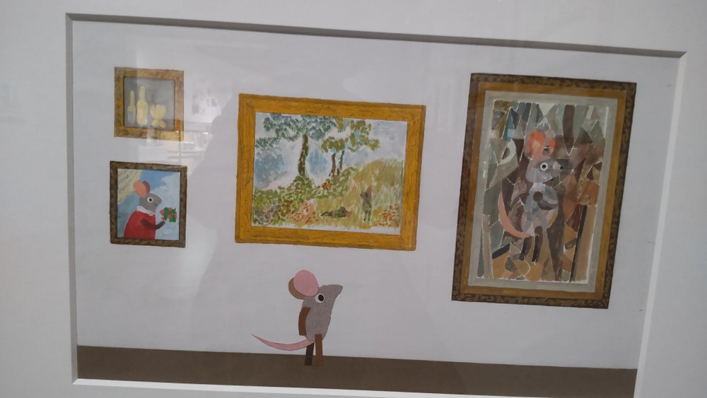 I really enjoyed looking around at his original pieces from his picture books. Some of them are created using stamps.