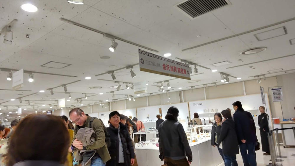 Today I went out to see a friend to have lunch and attend the Kanazawa Exhibition that we can enjoy looking around Kutani tableware and food from the region. Every year the exhibition is held at Hankyu Department Store, and my friend and I always look forward to it.